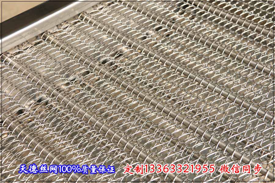 不銹鋼網(wǎng)帶的具體規(guī)格為:網(wǎng)帶絲徑為1.5毫米,穿絲直徑為1.5毫米,不銹鋼輸送帶的孔徑為15*25毫米。不銹鋼穿桿直徑為6毫米,穿桿的間距為150毫米,鏈條節(jié)距為31.75毫米,網(wǎng)帶輸送機(jī)的機(jī)身采用2.0毫米厚鍍鋅板折彎加工而成,鏈條兩邊采用5公分高1.5毫米厚的304材質(zhì)板材做擋邊。同時(shí)配帶180W電機(jī)和簡(jiǎn)易調(diào)頻器。