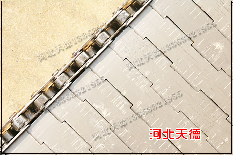 鏈板輸送帶采用1.0的鋼板折彎的,不需要打孔,鏈條節(jié)距為31.75毫米,鏈桿直徑為6毫米,兩條輸送帶都采用不銹鋼304材質(zhì),耐高溫耐磨損使用時間長久。