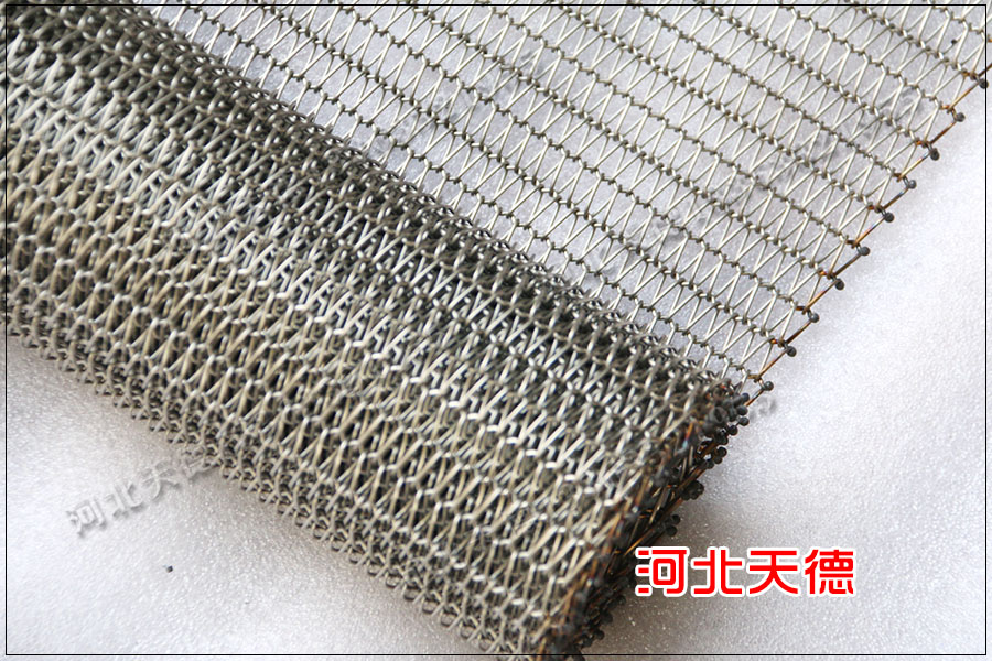 金屬輸送帶的總寬度為1.2米,長(zhǎng)度為100米,由于每米輸送帶上的載重沒(méi)有多少,絲徑定制為1.5毫米,網(wǎng)帶孔編織為10*20毫米,鏈條節(jié)距為37.15毫米,桿直徑為8毫米,桿之間的距離為100毫米左右,全部采用耐高溫不銹鋼304材質(zhì),金屬輸送帶加工好以后安裝的輸送設(shè)備上,在輸送帶的表面鋪一層30目的不銹鋼網(wǎng),這樣就能保證烘干效果,產(chǎn)品也不會(huì)在輸送的過(guò)程中漏下去。