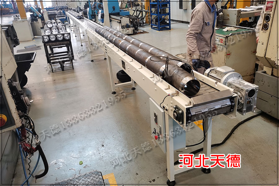 2、可在上層膠帶下膠面隔一段距離粘接上膠帶塊,以增加上層膠帶與物料間的摩擦。該裝置用于鏈板線(xiàn)局部坡度較大時(shí)的場(chǎng)合。