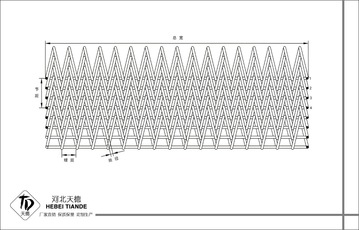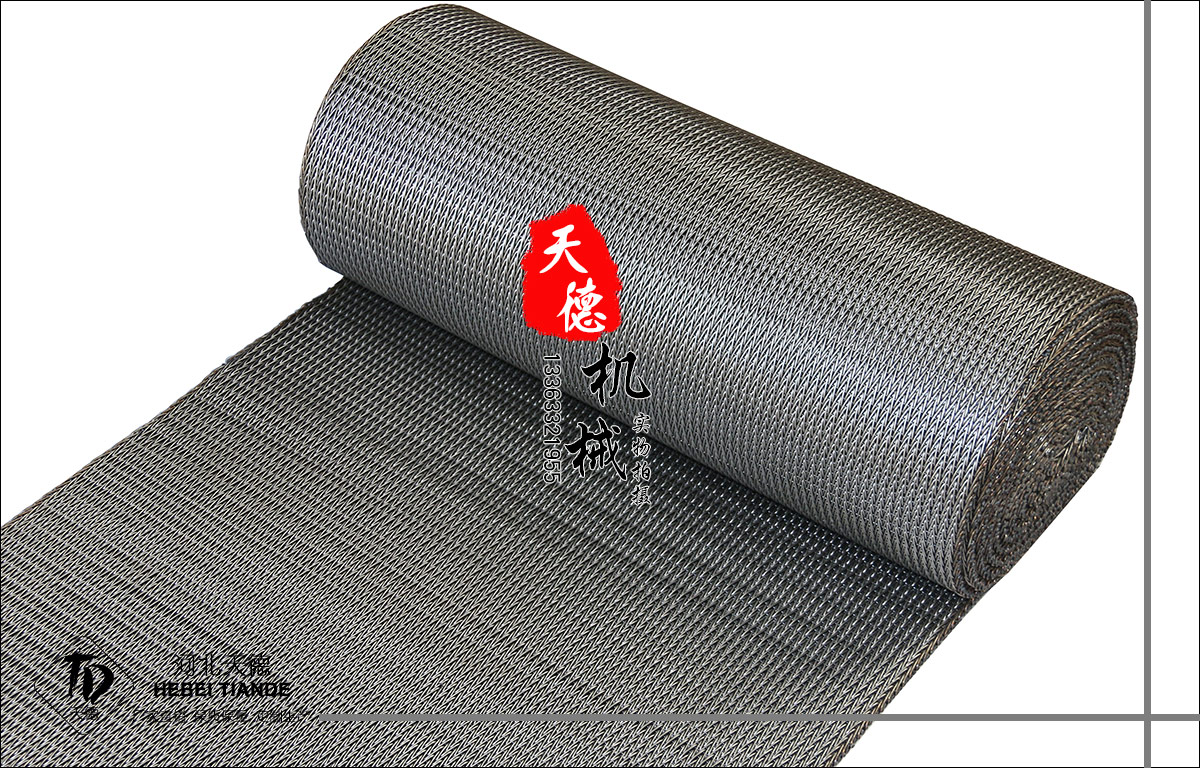 人字形網帶由左右交替的網條通過四根直串條聯(lián)結而成,準確的編織技術使網帶既具有密度、高網孔、細運行靈活的特點,它對材料和編織技術要求高。