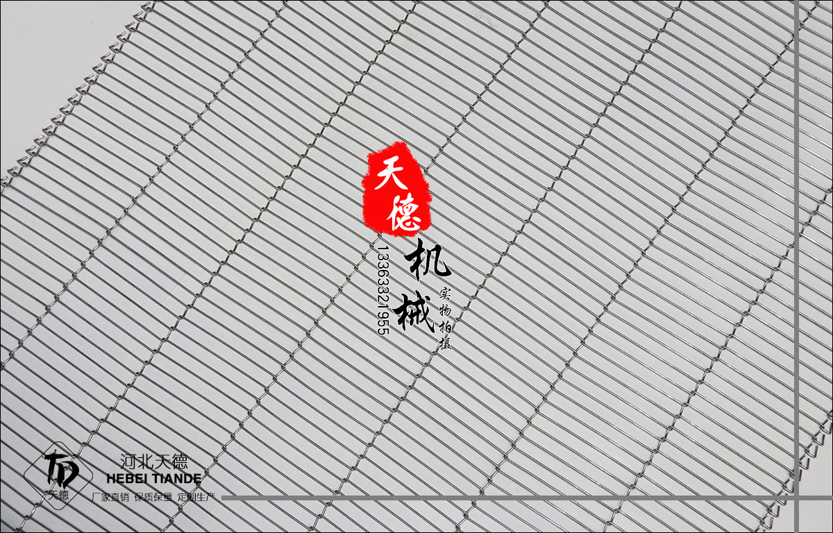 乙字網(wǎng)帶使用不銹鋼高彈柔韌絲制作。網(wǎng)帶多用單小邊結(jié)構(gòu)(常用),雙小邊結(jié)構(gòu)用于特殊用途??梢杂糜谥本€輸送機(jī),也可以用于轉(zhuǎn)彎輸送機(jī)。