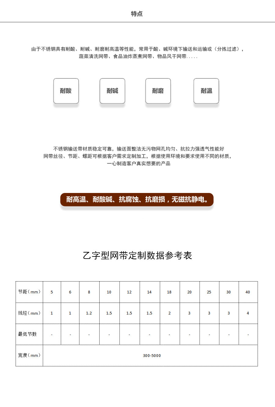 乙字型網(wǎng)帶用途:用于速凍食品,油炸食品,撒糖機(jī),巧克力涂層與各種食品輸送降溫線。