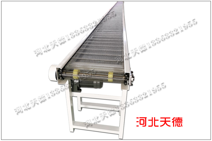 輸送線采用大滾珠鏈條式不銹鋼輸送帶來傳送物料,這種不銹鋼輸送帶是采用鋼絲編織在焊邊,鏈接上串桿與鏈條加工成的,詳細(xì)的規(guī)格尺寸是根據(jù)輸送產(chǎn)品的大小與重量來定制的,本臺網(wǎng)帶輸送機(jī)鏈條輸送帶詳細(xì)的尺寸為: